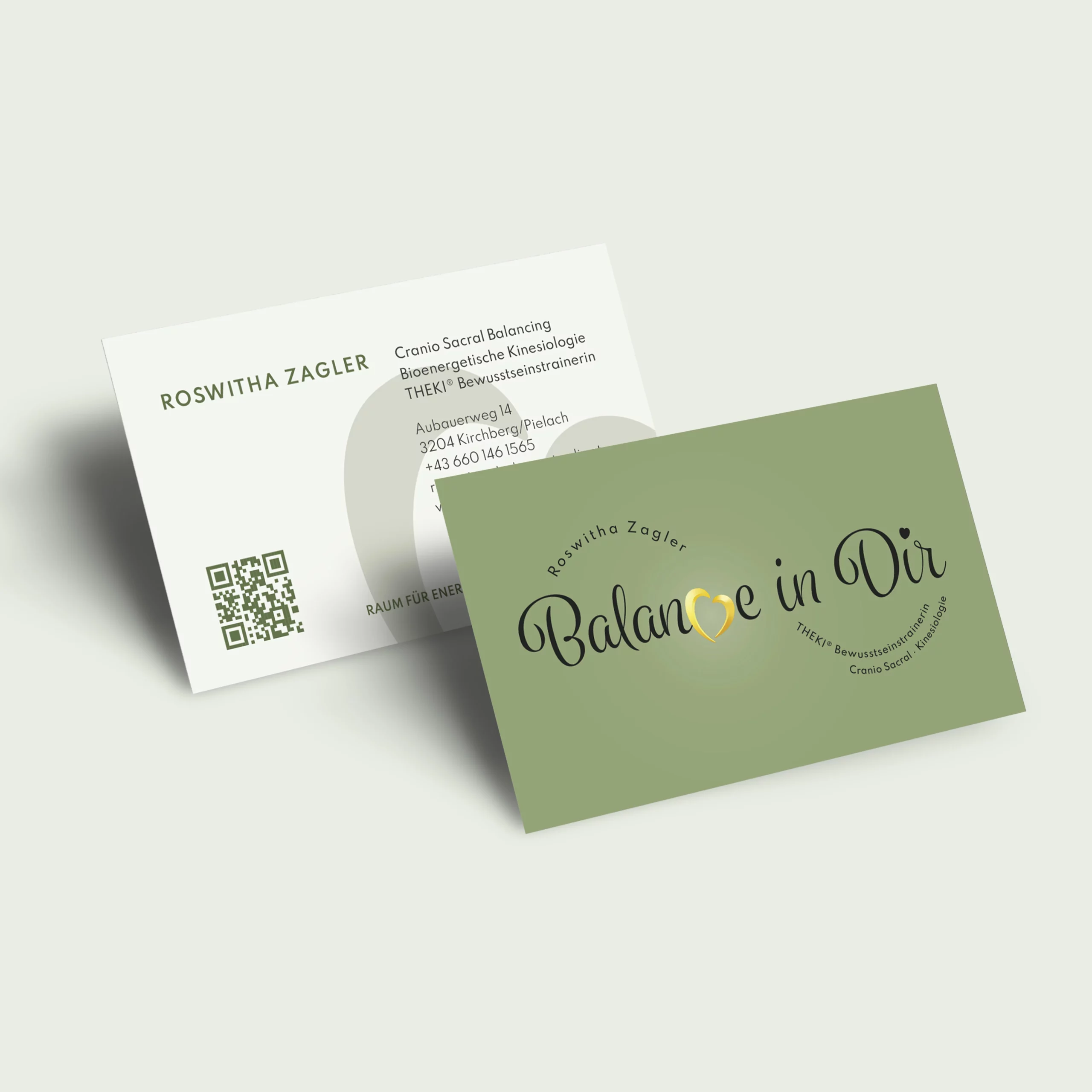 Das Logo im handgeschriebenen Stil bringt genau das zum Ausdruck: Es steht für Echtheit, Wärme und Menschlichkeit – als Gegenpol zu unserer digitalen, oft sehr hektischen Welt. Das goldene Herz sitzt am richtigen Fleck: in der Mitte, in der Balance, im Innersten. Es symbolisiert, was sie mit ihrer Arbeit erreichen will – die Rückkehr zur inneren Mitte, zur „Balance in Dir“.