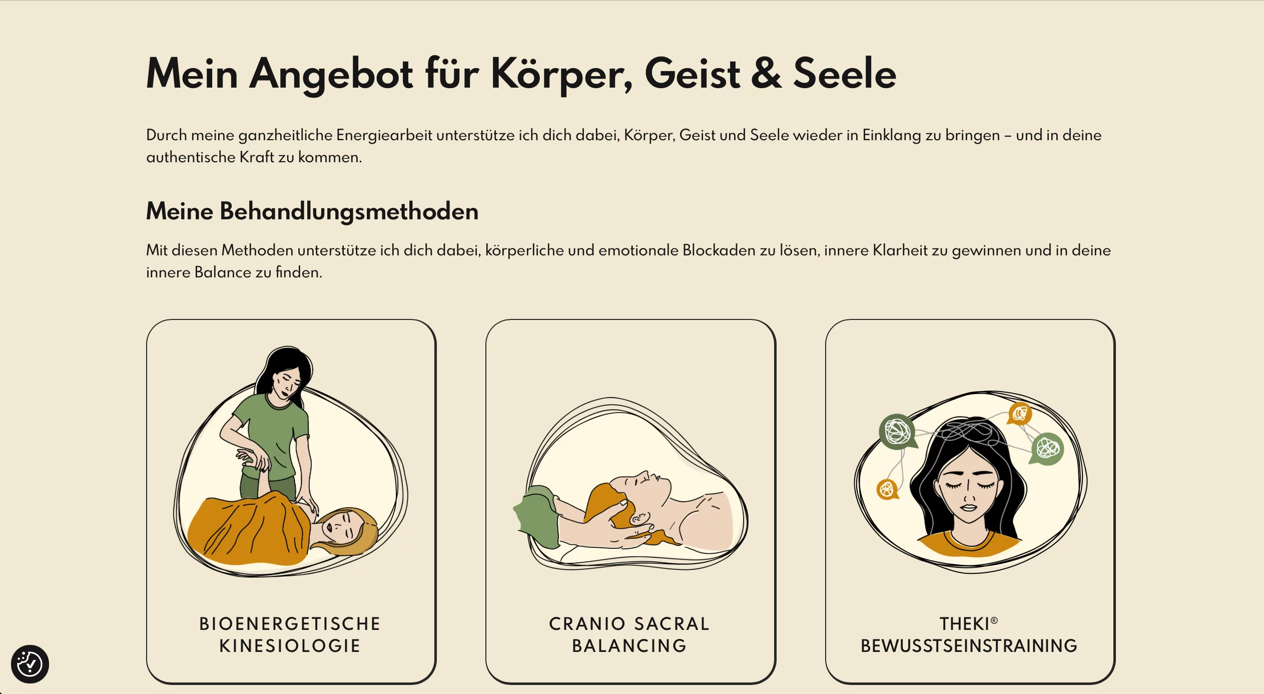 Ihre Vision war klar: Sie wollte einen Webauftritt, der nicht nur informiert, sondern berührt. Ein digitaler Raum, in dem sich Menschen willkommen und verstanden fühlen, noch bevor sie den ersten Schritt in ihre Praxis machen.
